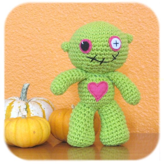crochet zombie in lime green