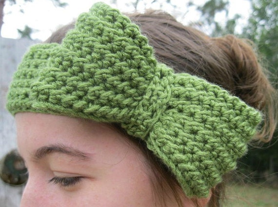 Sage Green Crochet Bow Headband by RindCounty on Etsy