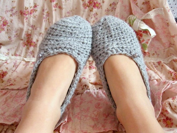 Soft Gray Crochet Women's House Slippers by RindCounty on Etsy