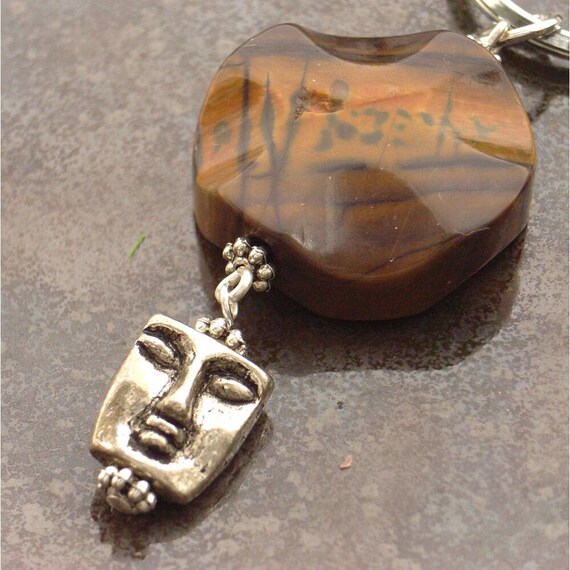 Purse charm keychain bag charm mask and jasper gemstone. Want to carry a man around with you all day?! Now ...