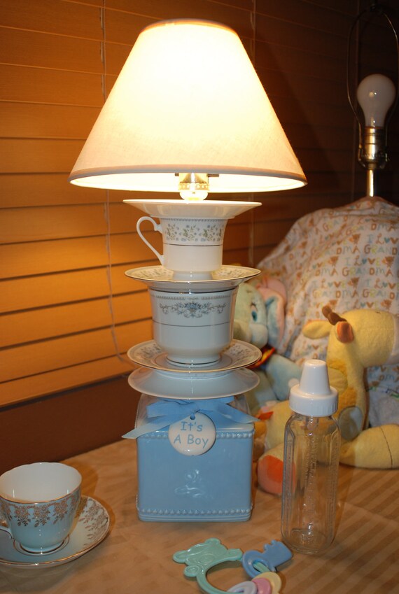 Handmade Upcycled Baby Boy Teacup Lamp
