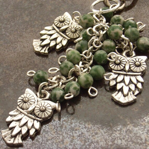 Purse or bag charm three wise owls with gemstone beads. Carry wisdom with you on your purse or bag with ...