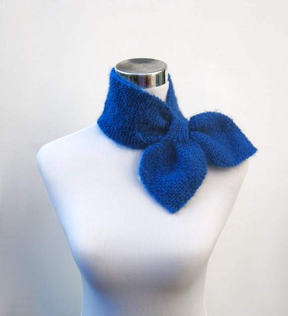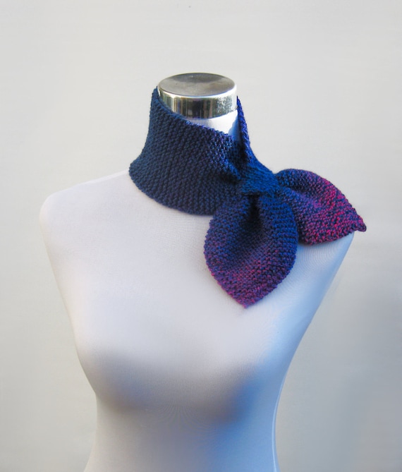 Knit ascot scarf retro 50s style bow tie neck warmer scarflette keyhole knit scarf in wool rich purple blue and ...