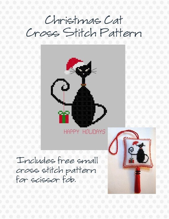 Christmas Black Cat cross stitch chart and pattern