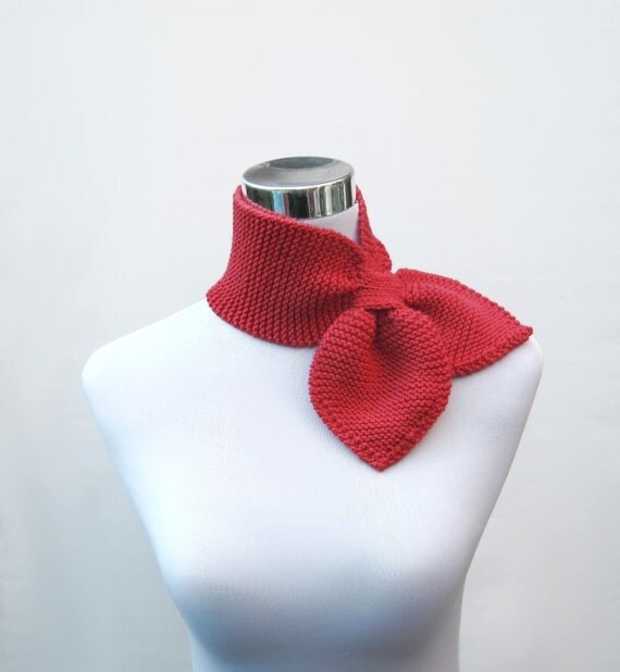 Merino ascot scarf 50s style retro bow tie necktie scarflette neck warmer in brick red extra fine merino wool.