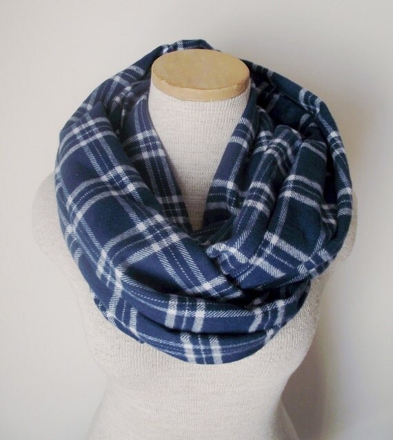 Infinity Scarf Plaid Flannel Cotton Cowl in Blue and White by MegansMenagerie