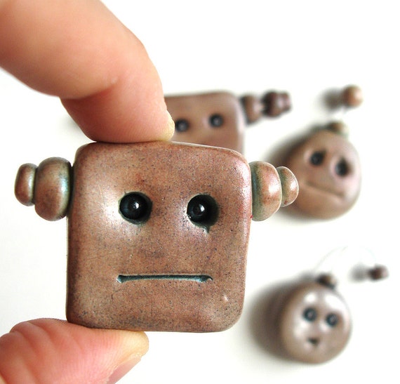 ADORABLE set of 4 mini robot magnet heads. They're created in a ...