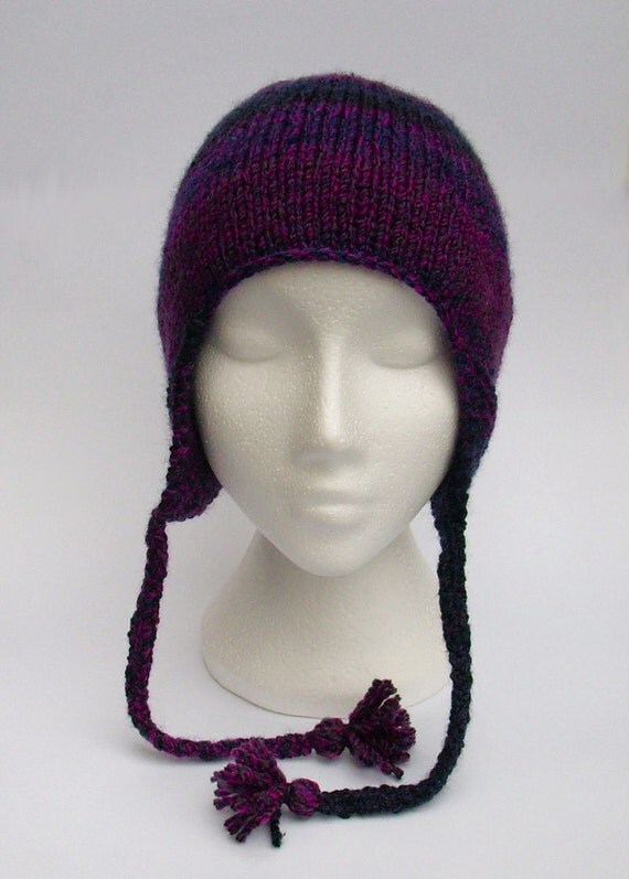 Ear flap hat with tassels handmade knitted multicolor striped ski hat.