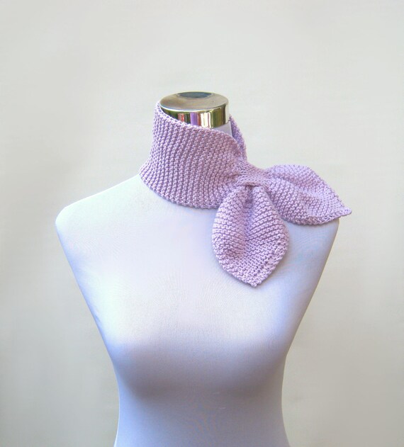 Knit neck warmer retro fifties style ascot scarf gypsy necktie in pretty lilac cotton.