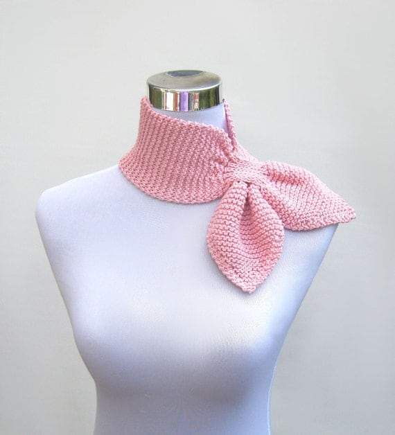 Retro scarf knit ascot neck warmer 50s style scarflette in baby pink cotton kapok.