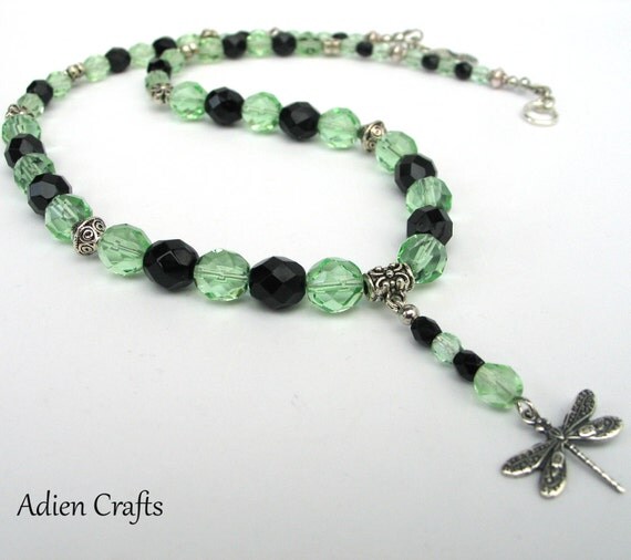 Green and Black Necklace Crystal Necklace by adiencrafts