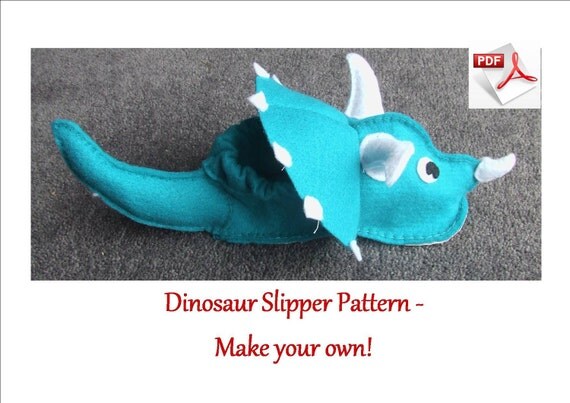Child's Dinosaur Slipper Pattern. Make your own cute Triceratops slippers. Ages 4-5 (Size 9-11). FREE POST