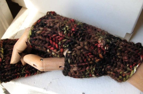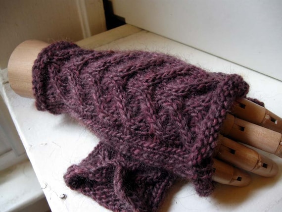 Knit fingerless handwarmers Bibbety Bobbity Mini by Moonthrall