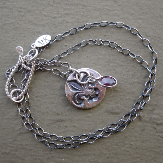 Fleur de Lis Garnet Charm by NKarmaJewelry on Etsy