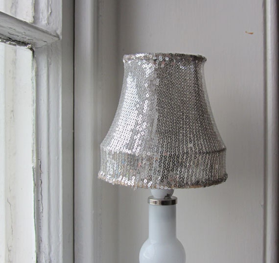 I used this silver sequin fabric to cover an old wire lampshade frame. Simple and classy, isn't it? Looks very ...