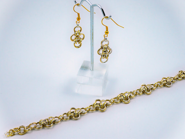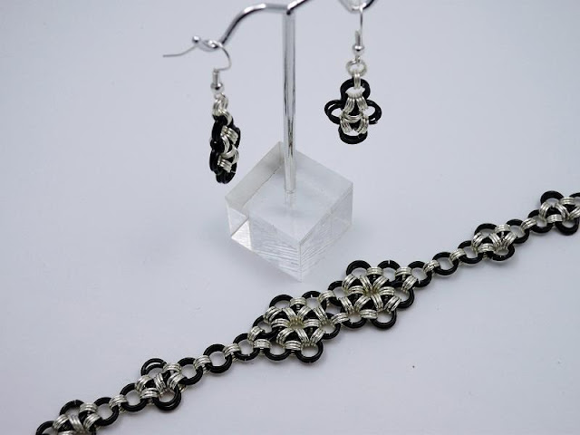 Almost Goth. A black and Silver chainmaille design from Treacle Knight at Treacle Knight's Jewellery. The set comprises of a ...