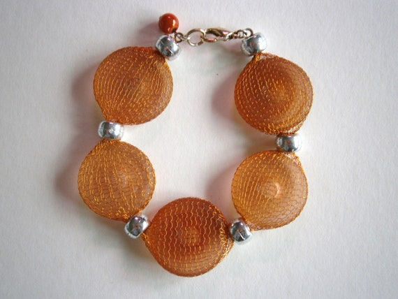 Orange glass doughnut wire mesh bracelet by AccessorizeToStylize