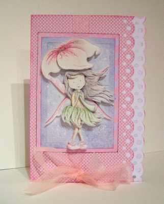 A cute little girlie card with a decoupaged fairy (this is layered up) with sparkly bits. The edge of the ...