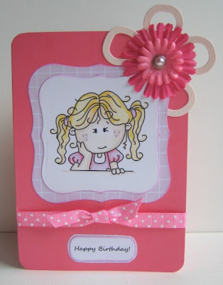 Such a cutie! A very pink and girly card with layered flower detail and pink spotty ribbon! The image is ...
