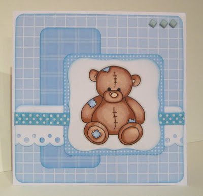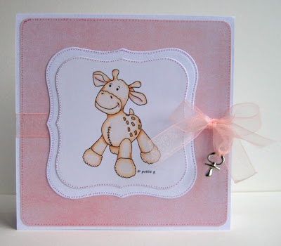 A cute new baby card featuring a digital image from Digi Sparkle that I have coloured with Promarkers and layered ...