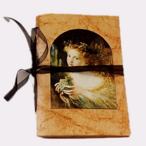 I made this notebook and covered it with batik print paper then placed the prettiest fairy pictured on the front. ...