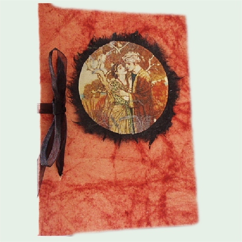 I was inspired to make this notebook by some gorgeous, romantic Indian artwork. I covered it with a batik print ...