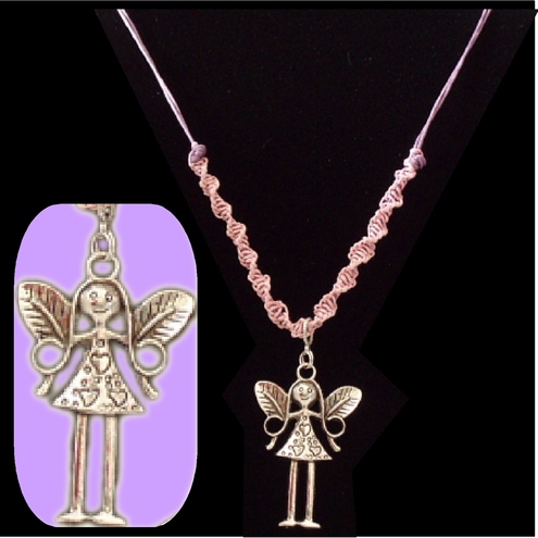 I made this cute fairy necklace from pink and lilac cotton cord. The pretty pink and lilac compliment each other ...