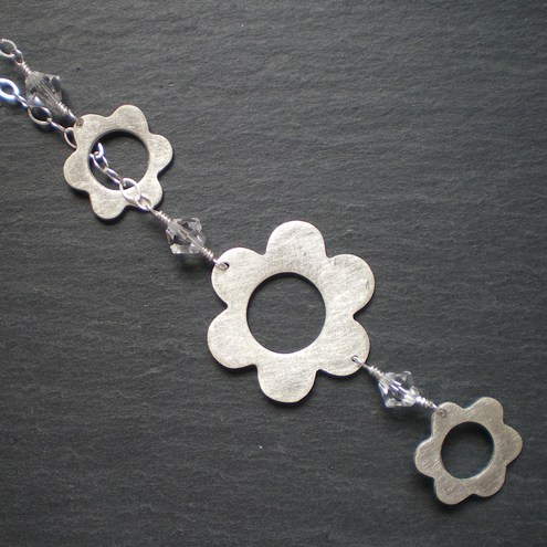 Lovely long lariat with 3 sterling silver daisies and swarovski crystals. A really elegant eye catching style. Suspended on a sterling ...