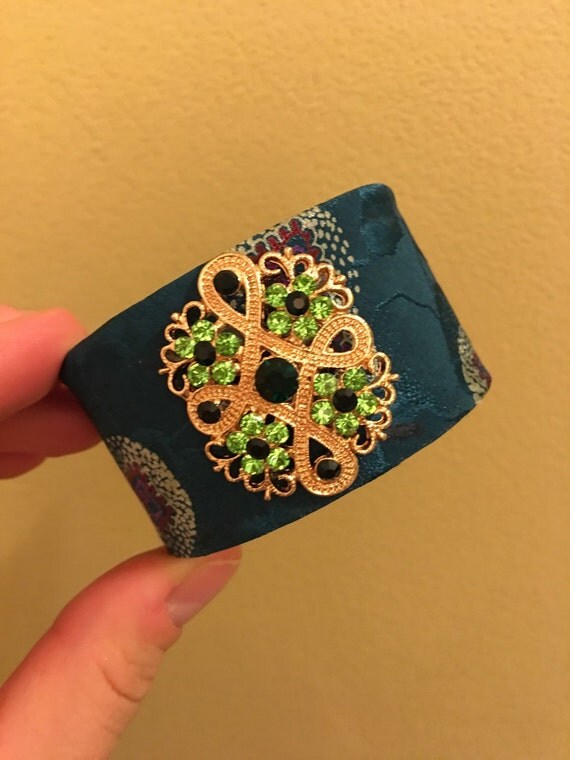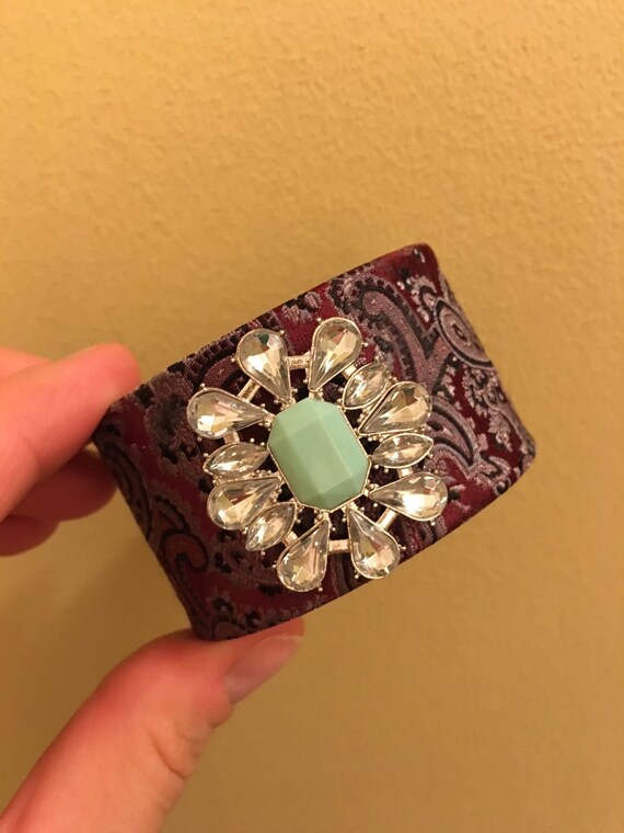 Funky dutch wax upcycled cuff bracelet vintage necktie brooch paisley Anthropologie inspired
