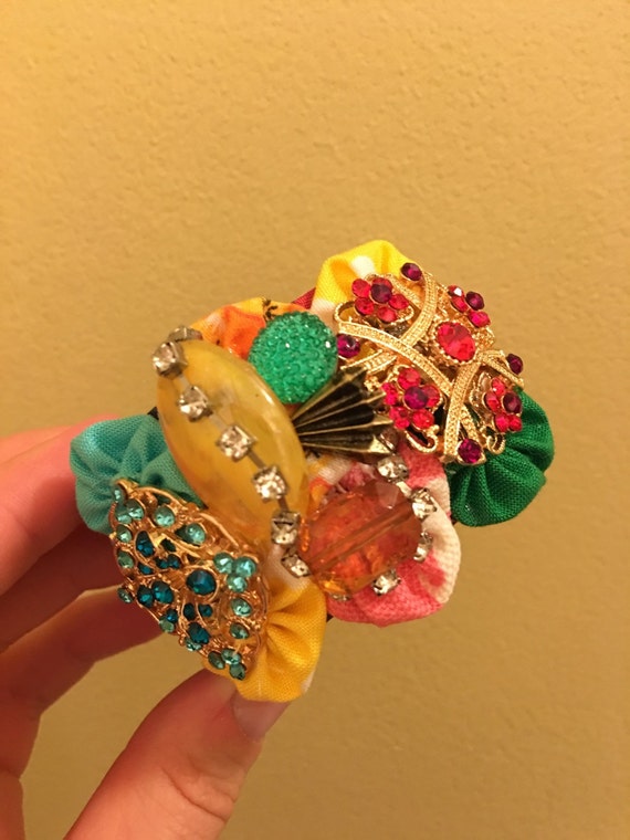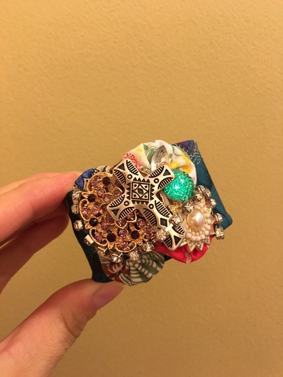 Funky dutch wax cuff bracelet vintage necktie brooch jewel Anthropologie inspired