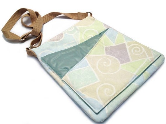 Green cross body bag iPad handbag brown fabric by TsetsiLaMode