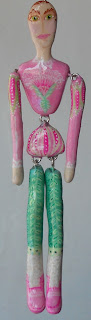 Handmade miniature art doll made of starch clay, paper mache and silver plated German silver wire.