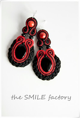 These black and red earrings are made with hand embroidery techique. Black onyx and red coral stones are trimmed with ...